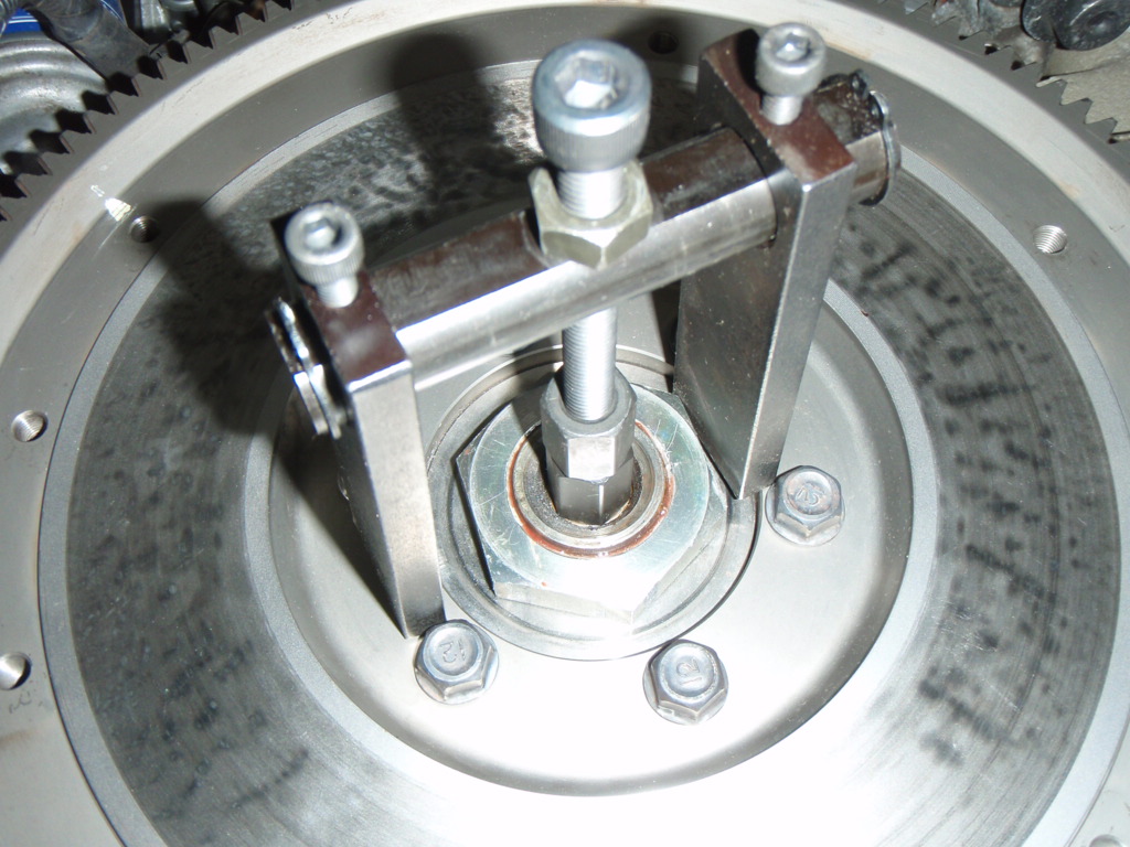 いつもながらセンターナットを緩めるのは大変です。締め付けトルクは500NM位なんですが緩めるときはどう考えても1000NM以上のトルクは必要です。